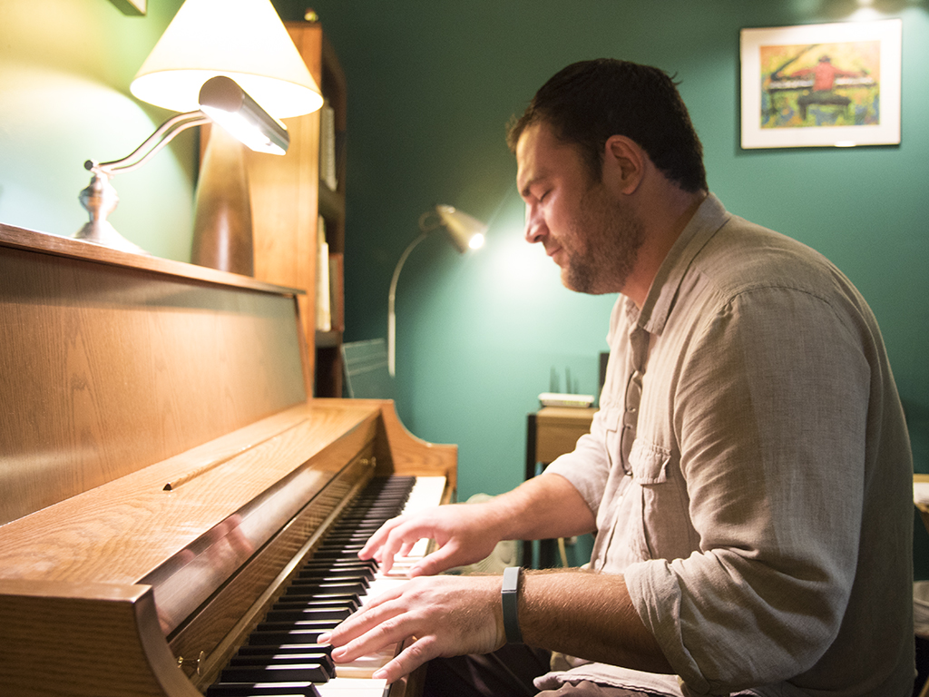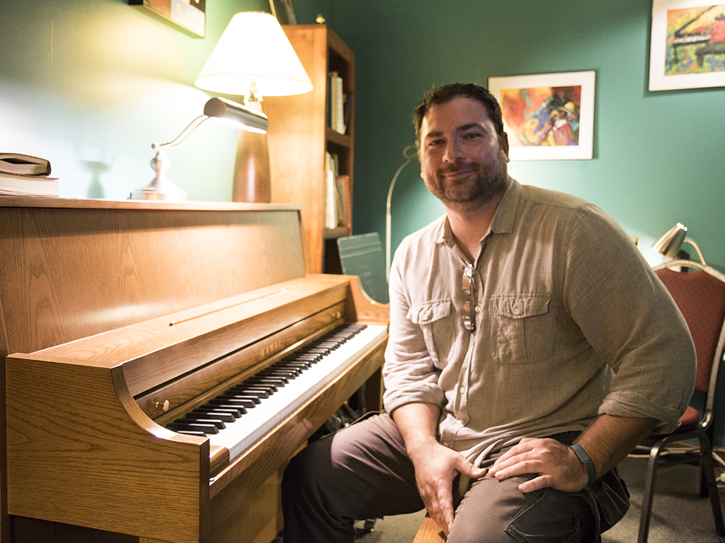 Jazz pianist Travis Hoover is one of those individuals who can classify himself as teacher and doer. He’s an adjunct faculty member in the Liberal Arts and Social Sciences division and teaches Jazz, Blues and Rock ‘n Roll, a class that’s as much interesting as it is engaging. That’s because Hoover brings his more than 20 years of experience as a performer into the classroom.