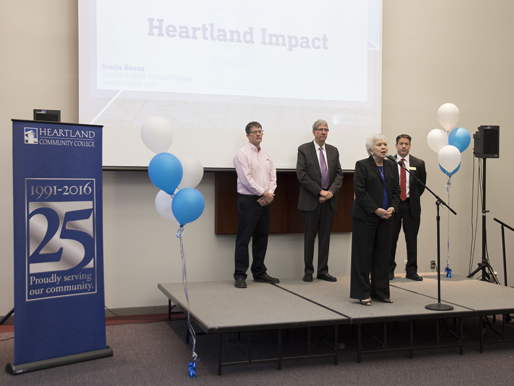 The College marked its 25th anniversary at the McLean County Chamber of Commerce’s Business before Hours on March 30, 2016. Reflecting on the past and looking toward the future, Widmer told a crowd of HCC supporters, “Heartland is here for the long haul.” Referencing the current state budget impasse, he noted “We’ve overcome challenges before and we’ll overcome challenges again, coming out stronger in the end.”